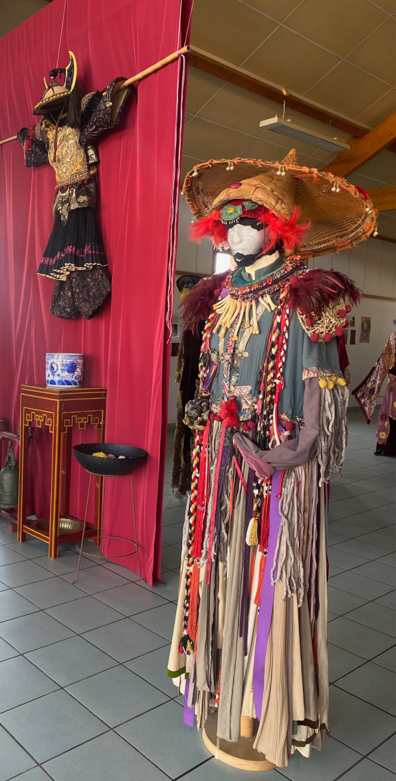 Les visiteurs pourront admirer une impressionnante collection de costumes de théâtre, comprenant des tenues et des masques typiques du théâtre traditionnel vietnamien. Ces pièces sont le fruit d'un ambitieux projet mené par les dramaturges de renom Alain Destandau et Bétina Schneeberger, qui ont consacré leur carrière à explorer et à entretenir les liens culturels entre l'Orient et l'Occident. Leur travail a contribué à préserver et à diffuser les traditions théâtrales vietnamiennes en Europe, ainsi qu'à créer de nouvelles interprétations artistiques combinant des éléments des deux styles.