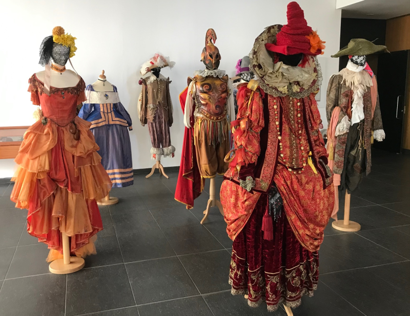 Ces costumes du spectacle "Scapin" fûrent également exposés dans plusieurs villes en France, au Viet Nam, en Espagne, en Italie, au Maroc et en Equateur